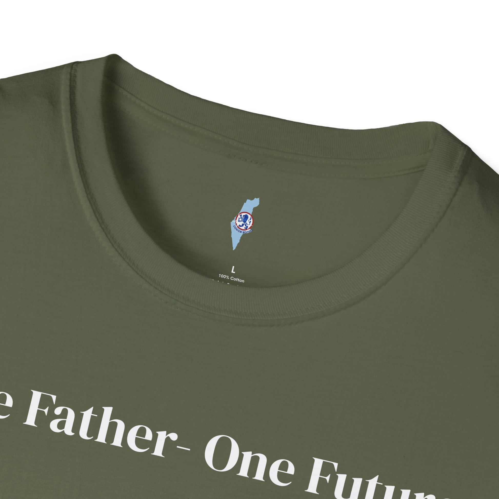 This is the Abraham Accords in cotton. The One Father One Future T-Shirt is mission-worn hope — a pro-Israel peace tee that turns scripture into solidarity, division into dialogue, and desert into destiny.